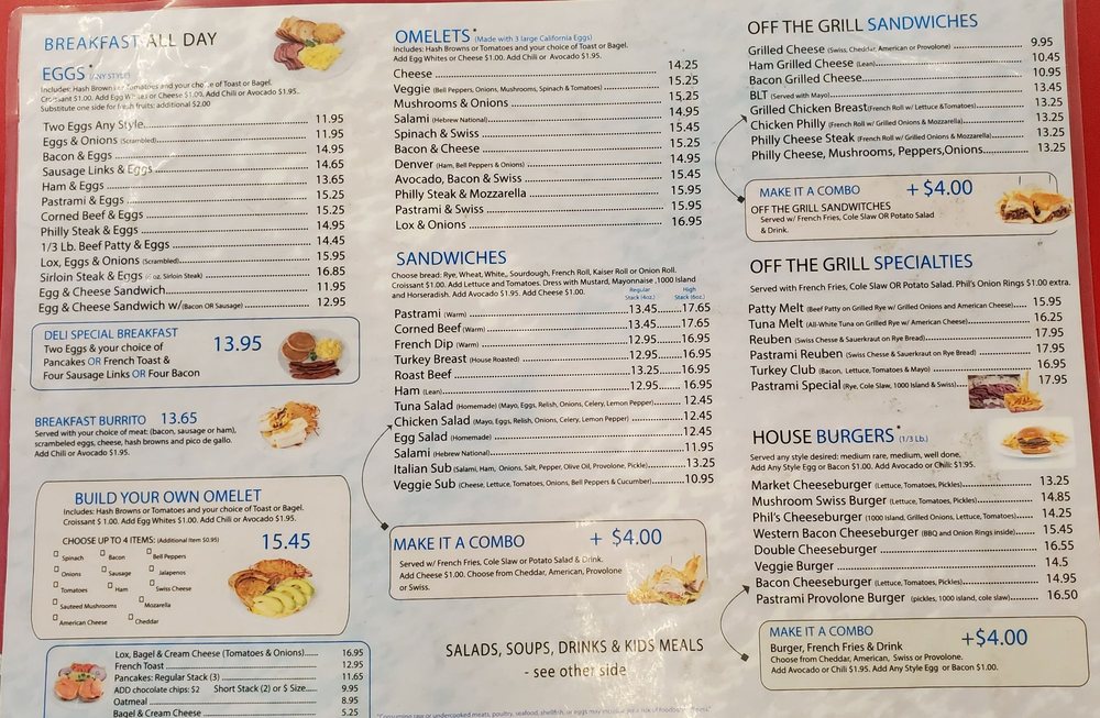 Located in Los Angeles, Phil's Deli & Grill offers a wide range of deli, burgers, breakfast, and brunch options. From Avocado, Bacon, and Swiss Omelet to Corned Beef Sandwich, their menu is filled with delicious and fulfilling choices. The casual atmosphere with outdoor seating makes it a perfect spot for groups, kids, and even furry friends. Customers rave about the massive portions of homemade cooking, with reviews praising dishes like the Roast Beef on Rye and the Pastrami Sandwich. The friendly staff and consistent quality keep customers coming back, making Phil's a must-visit LA institution. Don't miss out on the delectable omelettes and iconic French dip sandwich, truly a flavor experience not to be missed. Visit Phil's Deli & Grill for a satisfying meal that will leave you wanting to come back for more.